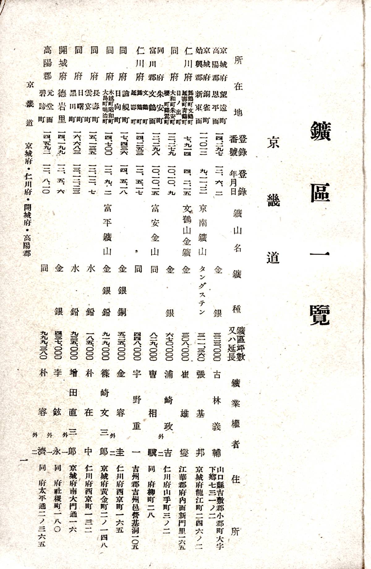 - 朝鮮鉱区一覧 Showa 15 (1940) 7 月 1 日現在